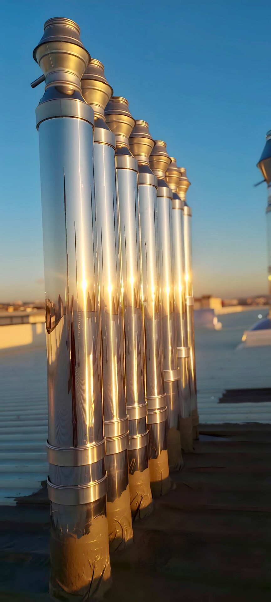 Doğalgaz yanması sonucu ortaya çıkan su buharı ve asit içerikli gazlar, paslanmaz doğalgaz bacaları ile atmosfere güvenli bir şekilde tahliye edilmelidir. Bu bacalar, korozyona dayanıklı olmaları ve uzun ömürlü kullanım sunmaları nedeniyle AISI 316L kalite paslanmaz çelik sac kullanılarak üretilmelidir. Palmiye Baca, standartlara uygun bacalar üretmekte ve profesyonel montaj hizmeti sunmaktadır.